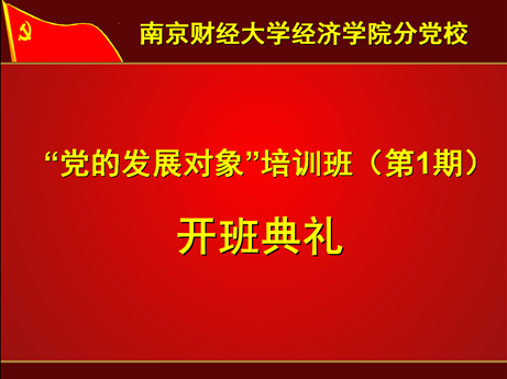 11月23日上午,我院在Z1-116举行2013年第一期分党校开班典礼。这是南京财经大学调整基层党组织设置,成立中共南京财经大学经济学院委员会后的经济学院分党校第一期“党的发展对象培训班”,54名本科生、19名研究生共73名入党积极分子参加了本期培训,学院党委书记胡荣华教授出席开班典礼,开班典礼由学生党支部书记徐山昌主持。