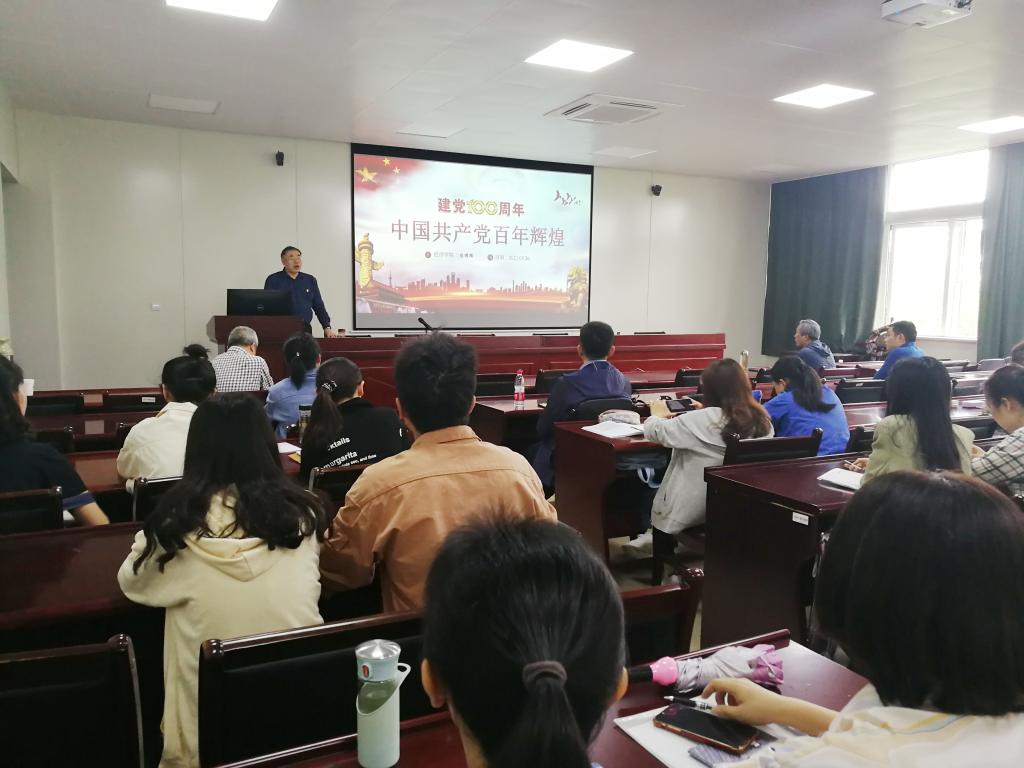 5月26日下午两点,根据党史学习教育的工作安排和统计系教工党支部工作计划,经济学院党委书记陈耀辉同志在经济学院307会议室讲授题为“中国共产党百年辉煌”的专题党课。统计系教工党支部,教务处党支部、经济学院研究生第二党支部两支共建党支部以及经济系教工党支部的党员参加了本次党课的学习。