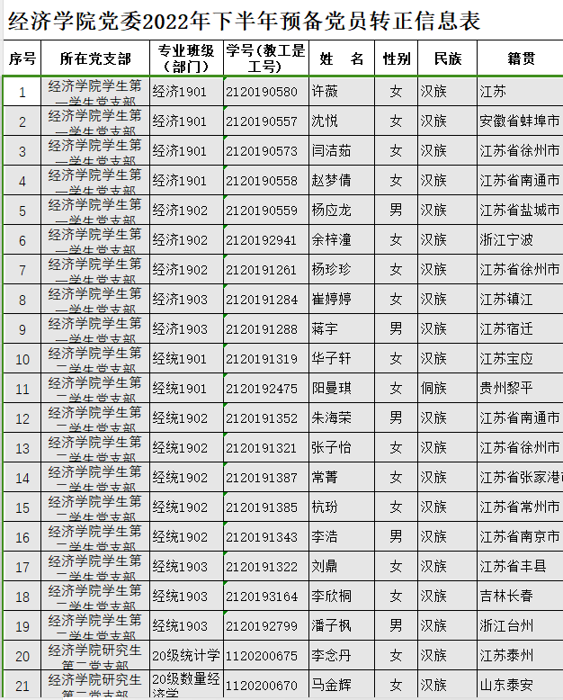 在听取党小组和党员、群众意见的基础上,经支部委员会审查同意,近期将召开支部大会,拟同意许薇等30名同志转为中共正式党员。根据发展党员工作有关要求,现将其有关情况公示如下: