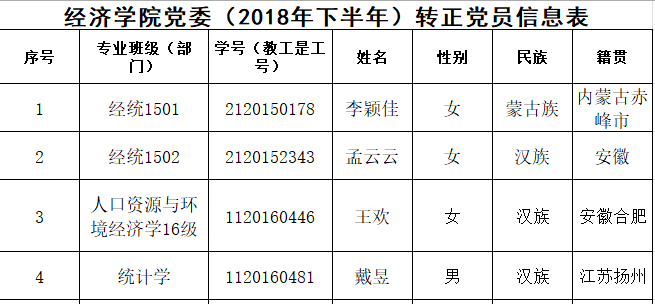 在听取党小组和党员、群众意见的基础上,经支部委员会审查同意,近期将召开支部大会,拟同意李颖佳等4名同志转为中共正式党员。根据发展党员工作有关要求,现将其有关情况公示如下: