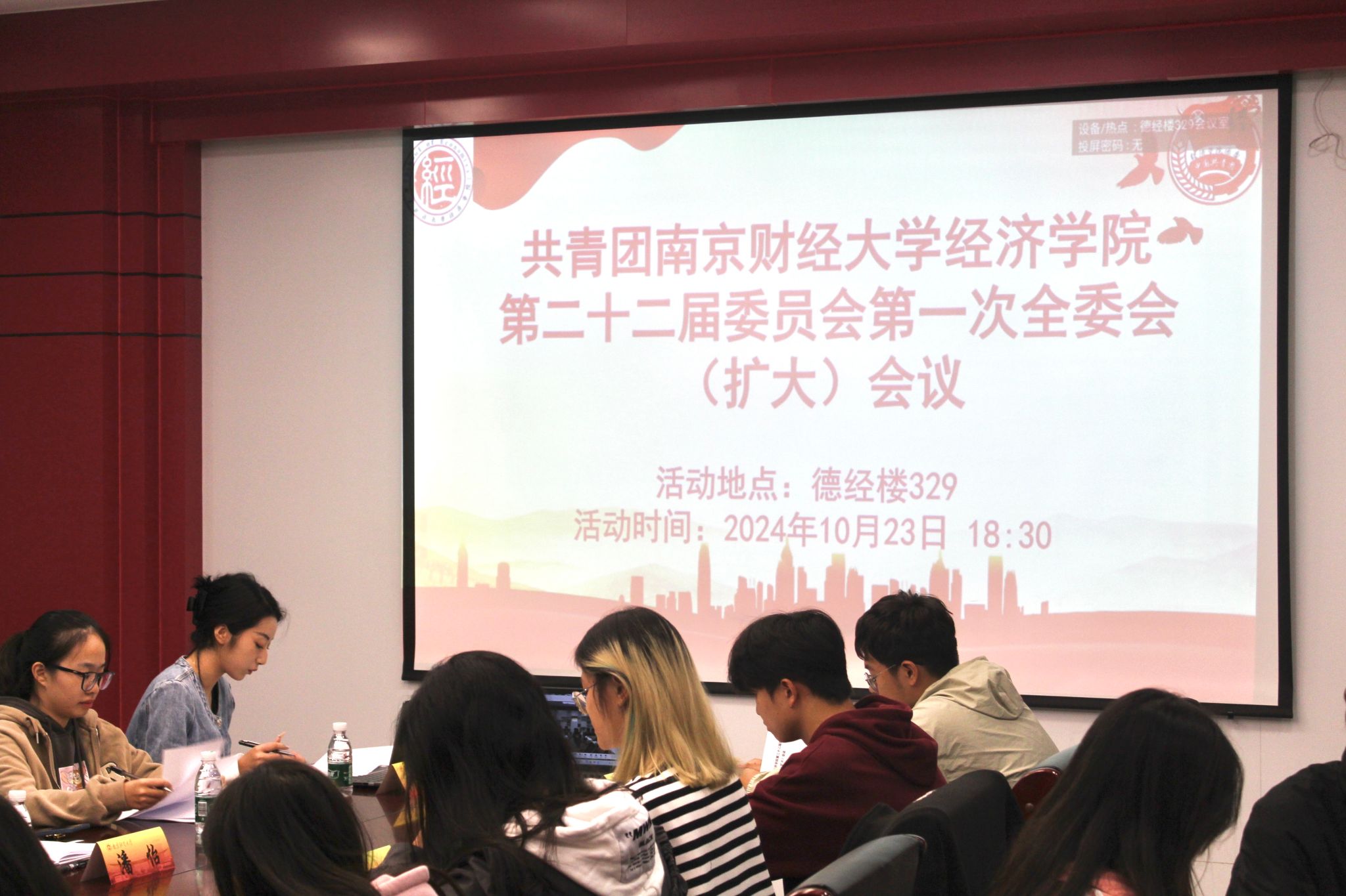 10月23日晚,共青团南京财经大学经济学院第二十二届委员会第一次全委(扩大)会议在德经楼329召开。院团委书记潘怡、院团委全体、2021级至2024级团支部书记参加会议。