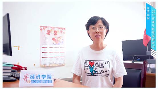 经济学院学工秘书尹海燕老师说:希望你们脚踏实地,开心的工作,快乐的生活。