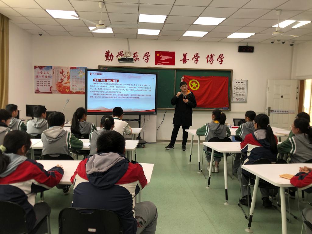 3月29日下午,经济学院研究生党支部受邀前往秦淮外国语学校教育集团十八中校区,为21名入团积极分子讲授“奋斗·青春”主题团课。