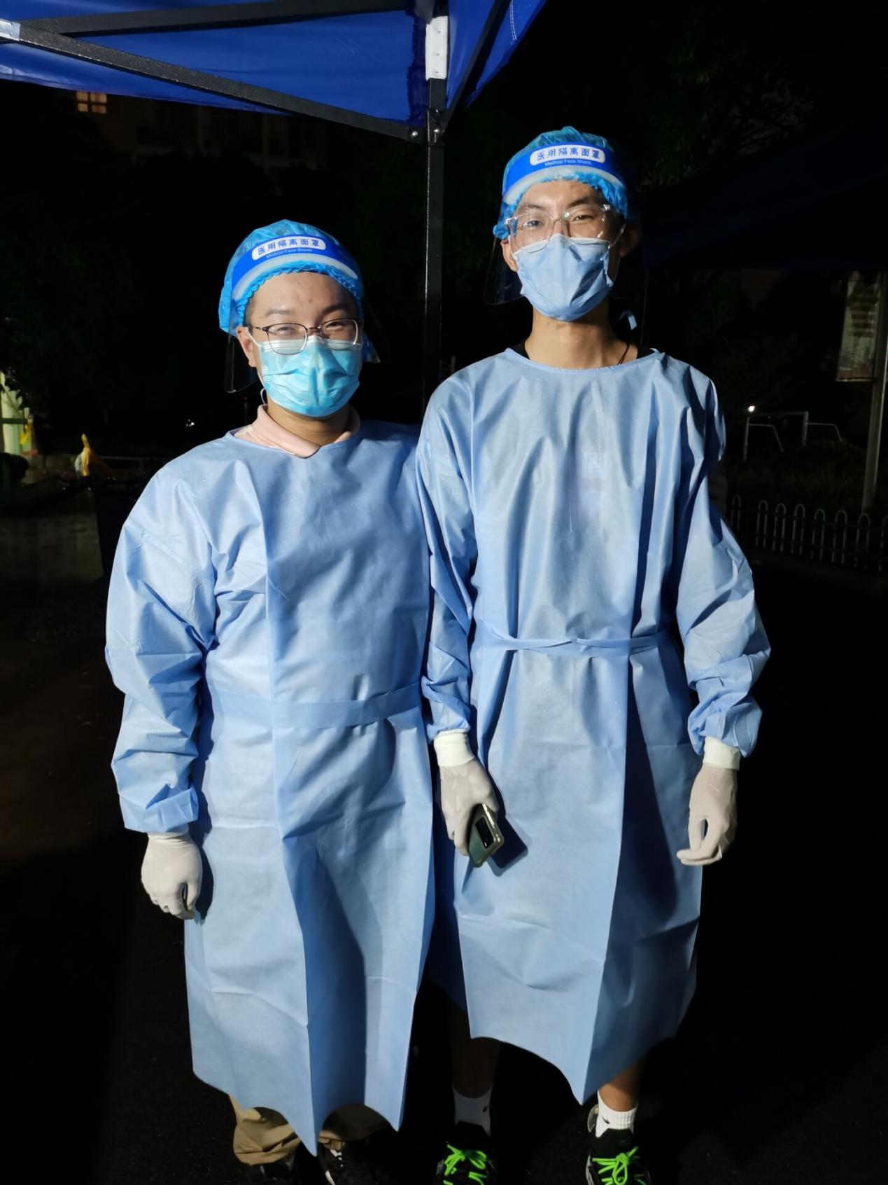 经济学院20级学生抗疫志愿者(左)刘泓志