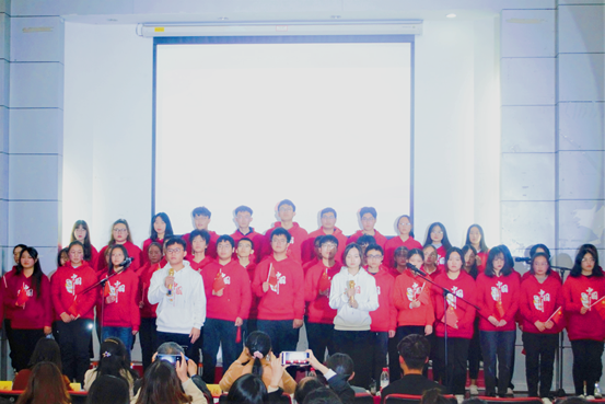 研究生21级经济班《我爱你中国》传达出一代青年人对祖国的满腔爱意。同学们手执五星的红心,将藏于心底的爱意显露于表,用歌声表达对祖国的忠诚与信仰。