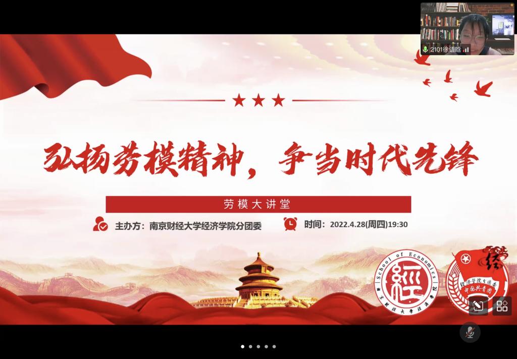 劳动模范是每个时代劳动精神的典型化身,是引导广大学生培育践行社会主义核心价值观的宝贵财富和优秀载体。在劳动节来临之际,为充分发挥劳动模范先进事例和优秀品质的感召作用,让同学们能有机会近距离接触劳动模范、聆听劳模故事、感受劳模精神,我院分团委以线上会议的形式组织开展了“弘扬劳模精神,争当时代先锋”劳模大讲堂活动。