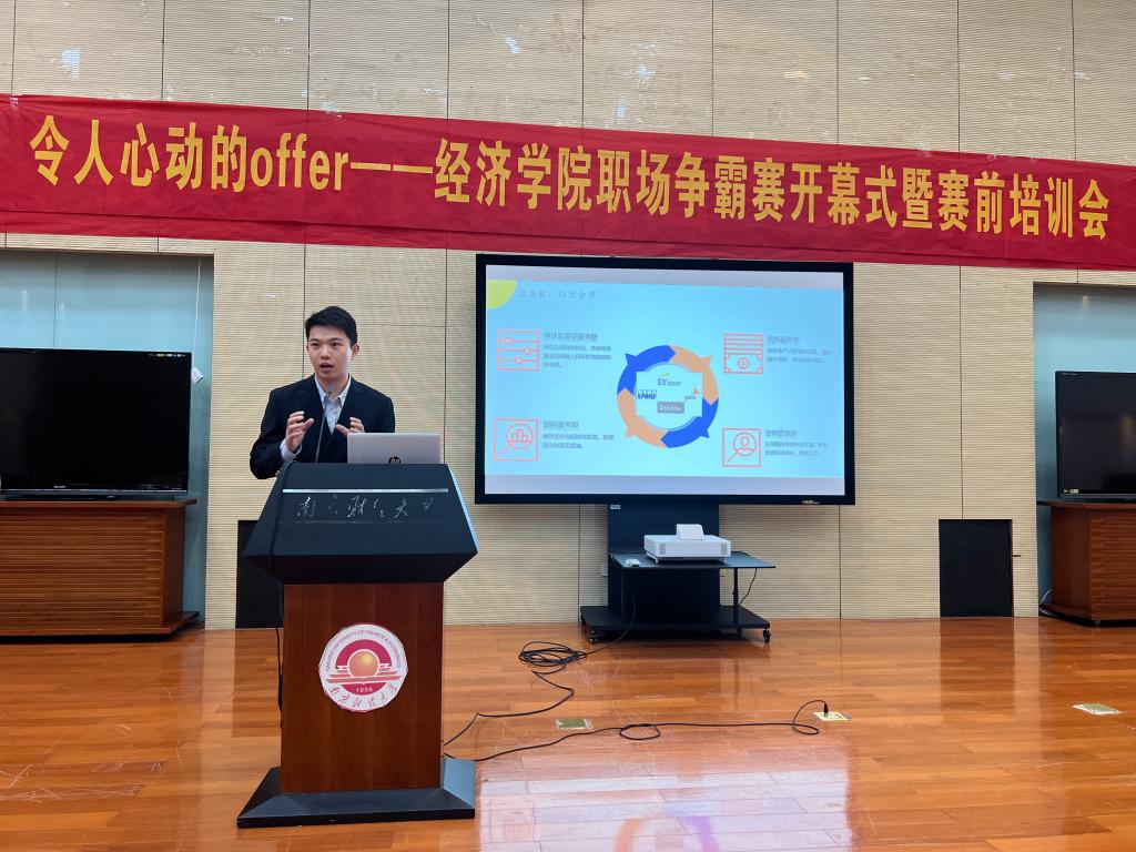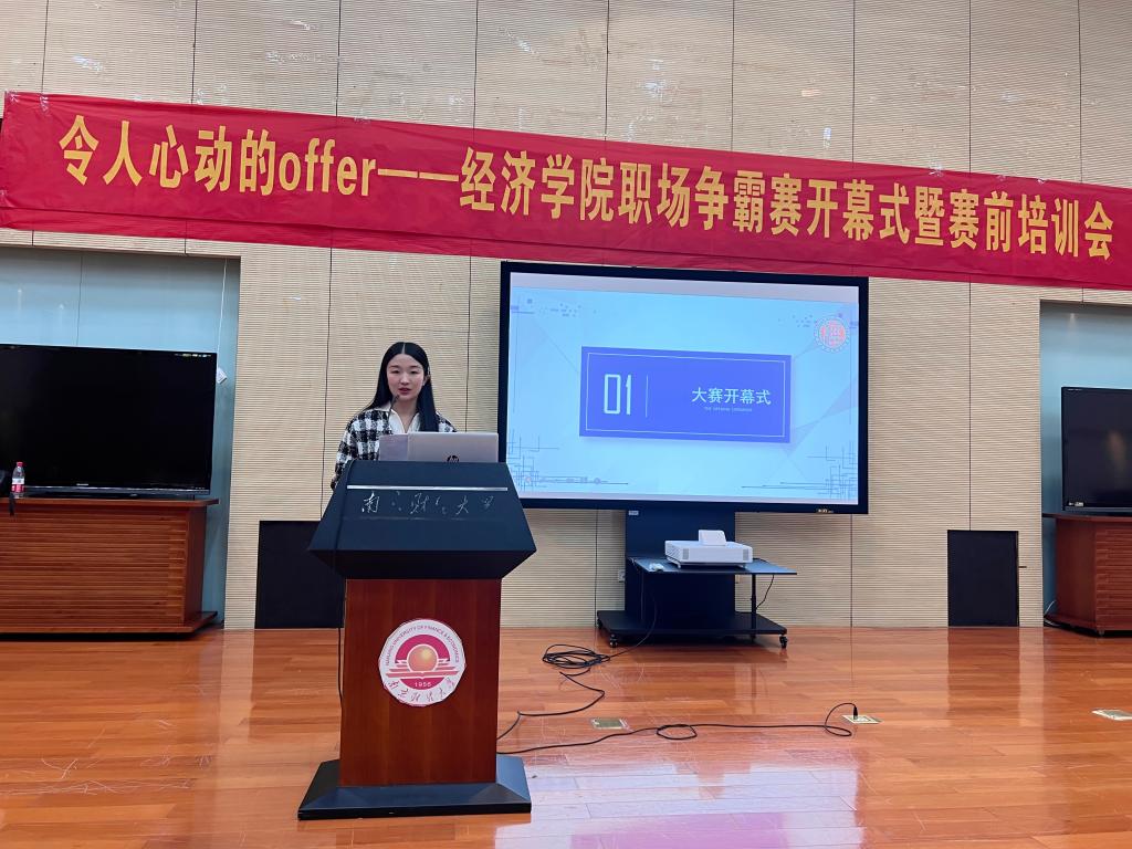 11月16日晚,经济学院于图书馆世界之窗顺利举办了“令人心动的offer”第五届职场争霸赛开幕式。普华永道会计事务所原校招面试官、小红书现任项目总监Will老师,经济学院分团委书记潘怡老师出席开幕式,各年级学生到场聆听。