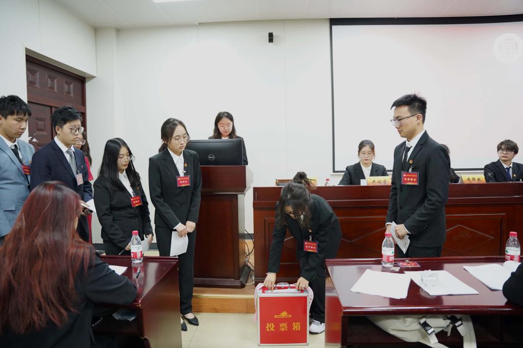 随后,大会进行了主席团成员和经济学院第二届学生会委员会委员选举,选举产生严明斐、张译文、黄驿然三名主席及王馨悦、尤知凡、吕进勇等十九位经济学院第二届学生会委员会委员。