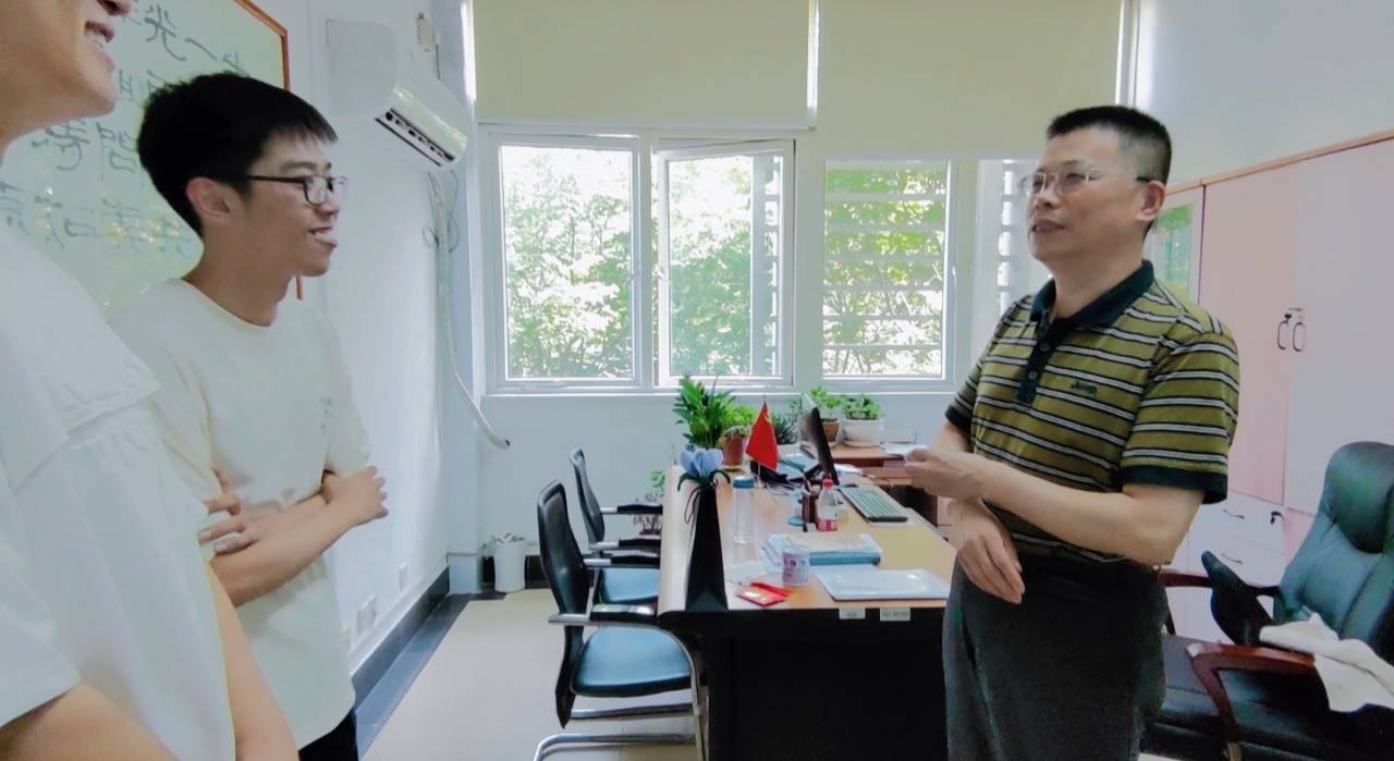 数统2201班的同学们捧着拥有美好寓意的绿植和饱含他们诚挚敬意的贺卡,敲开了统计学课程的老师——副院长韩中老师的办公室,韩中老师看到同学们的祝福露出了惊喜的笑容,并为统计系的同学们讲解学业上的困难。