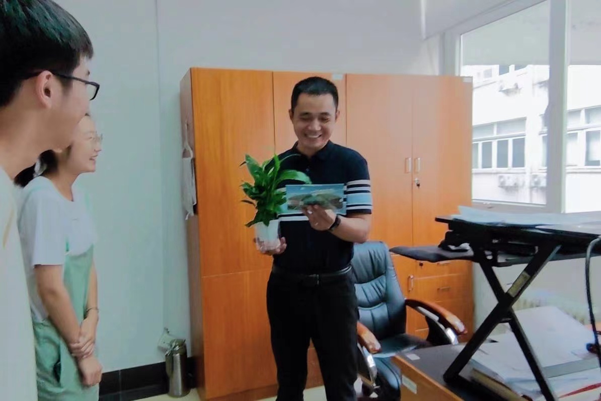 “朱院长,马上就要教师节了,祝您教师节快乐!这是送给您的种子盲盒和绿植,感谢您的精心呵护,我们一定茁壮成长!”同学们向朱红根院长献上最真挚的教师节祝福。
