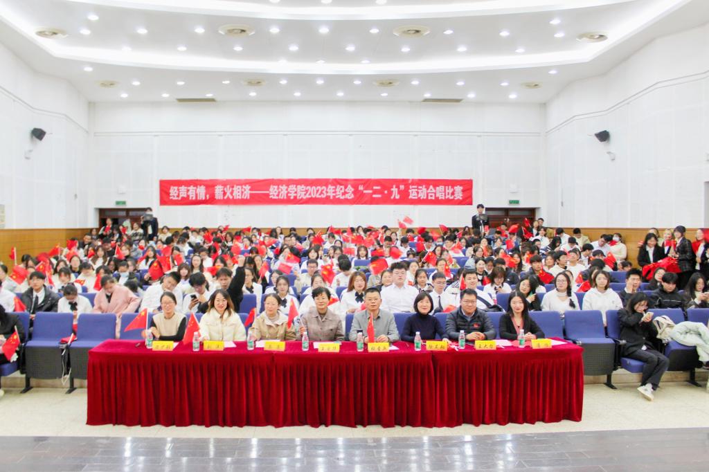 纪念“一二·九”运动合唱比赛,是经济学院为纪念“一二·九”运动而举办的一场合唱盛会。每年十月中旬至十二月初,新生们在学院各处排练“一二·九”合唱曲目,留下了无数关于南财与经院的共同回忆。经济学院连续多年举办“一二·九”合唱比赛,引领经院青年在歌声中追思峥嵘岁月,在纪念中思考时代主题,将爱国主义教育和集体主义教育融入到声乐美育教育中,年复一年,重温革命先辈为实现民族独立和解放而奋勇前进的革命历程,赓续“团结起来,振兴中华”和“请党放心,强国有我”的青年使命。