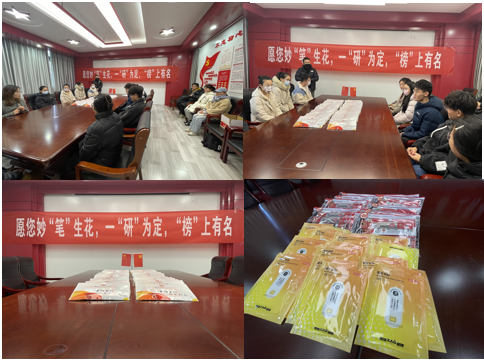 “2024,愿您妙‘笔’生花,一‘研’为定,‘榜’上有名!”12月13日中午13:00,德经楼307室传来响亮的口号声,经济学院在此召开2024研究生考试考前动员会。大会由党委副书记贾亦璞主持,学工秘书梁少颖、毕业班辅导员张闻和部分考研学生参加大会。