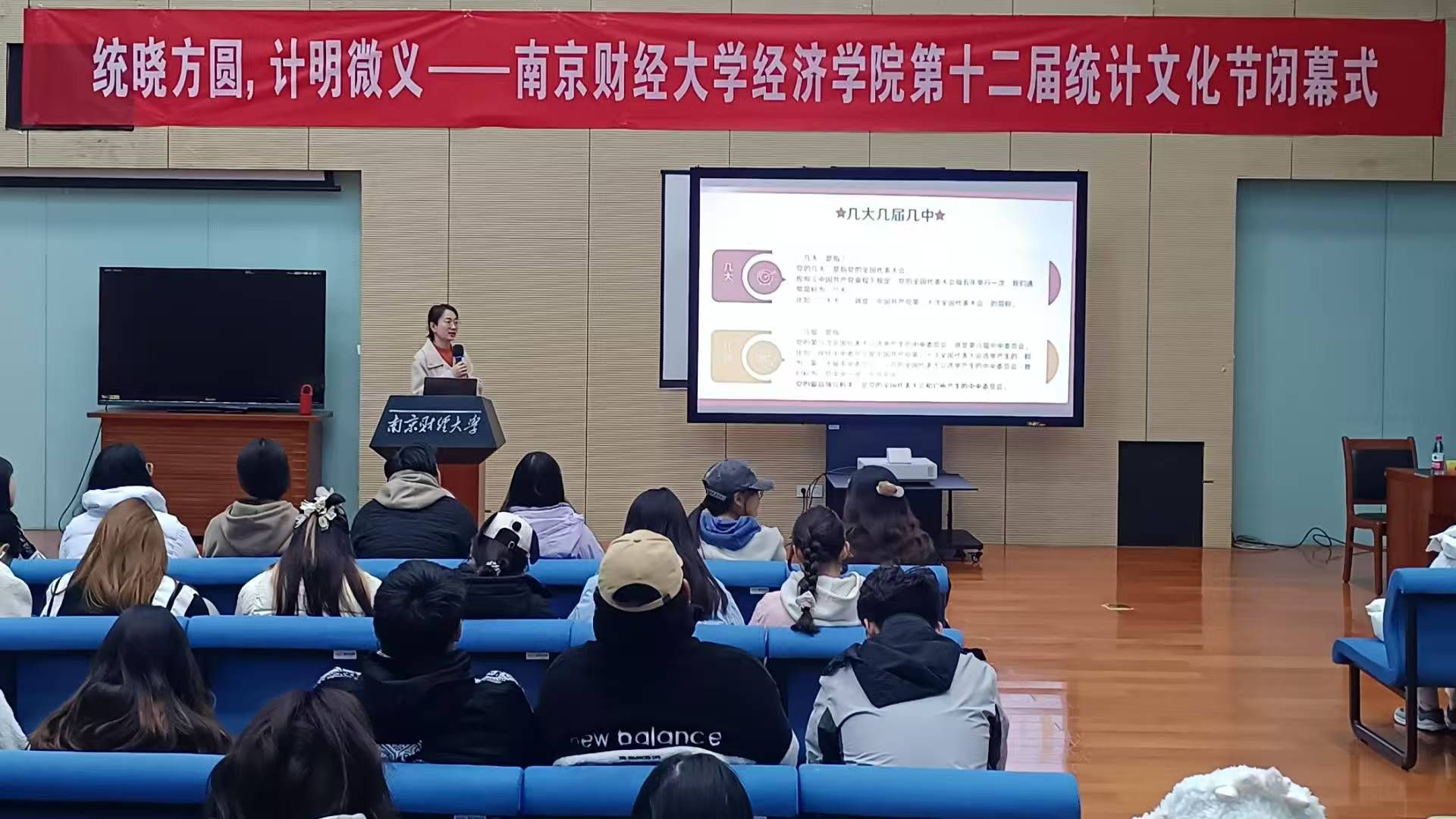接着,经济学院学生会学业发展中心负责人陈莹樱同学对本次统计文化节进行了全面的总结回顾。在一幅幅生动鲜活的图片展示与陈莹樱同学的精彩讲解下,同学们深切感受到了本次活动的丰富多彩与独特魅力,纷纷对活动给予了高度肯定。