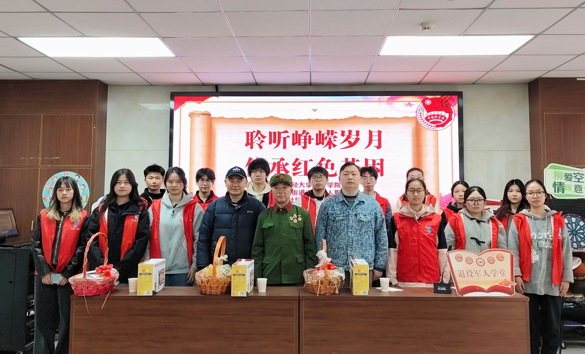 聆听峥嵘岁月,躬身实践显担当。当日上午,活动在柳塘社区正式启动。经济学院团委学生代表高企贤在发言中强调,学院始终将红色教育作为青年政治骨干培养的重要抓手,引导青年学子在实践中厚植家国情怀,将爱国之志转化为报国之行。随后,三位退役军人以亲身经历为学员们上了一堂生动的爱国主义教育课。退役军人王十周回顾部队后勤保障的艰辛,诠释“后方亦是战场”的责任担当;对越自卫反击战亲历者袁金国讲述战场上的真实故事,再现先烈保家卫国的壮烈情怀;武警战士曹赟分享从军生涯淬炼的坚韧品格,激励青年锤炼意志、勇担使命。学员们认真聆听、记录感悟,并以志愿服务践行初心,分组对社区公共区域进行全面清洁,从道路清扫到垃圾分类,以实际行动展现新时代青年的责任担当,赢得居民一致赞誉。