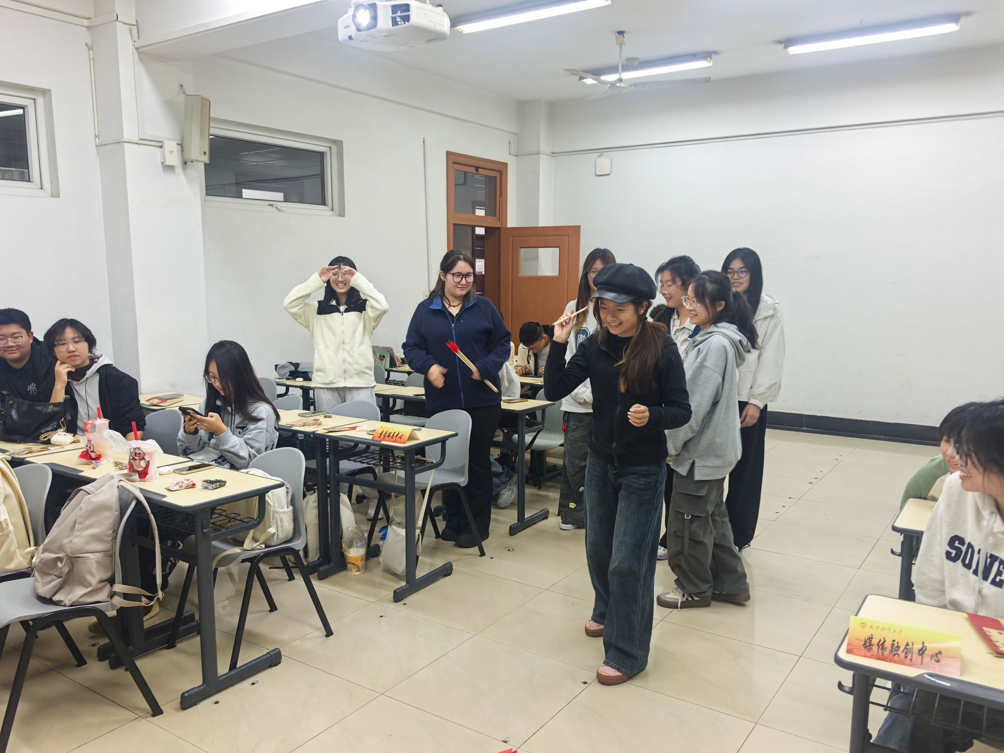 活动在温馨融洽的氛围中拉开帷幕。主持人先向大家介绍了重阳节的历史渊源与文化内涵,然后带同学们进入精心设计的互动环节。“敬老问答赛”围绕重阳习俗与历史展开,意在增进大家对重阳节的文化认知。同学们踊跃抢答,现场气氛热烈。接着,在“经典影音猜猜猜”环节中,主持人播放了老歌前奏和老影视作品,一段段熟悉的旋律与影视片段勾起大家对往昔岁月的共鸣,也增进了对长辈生活时代的理解。