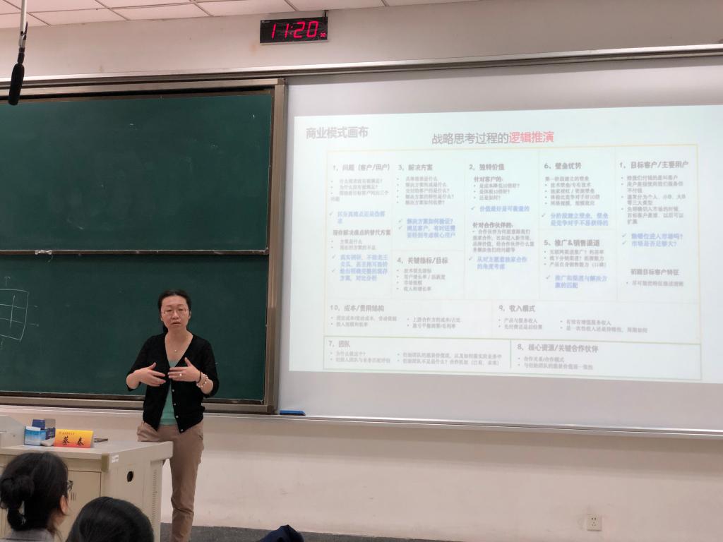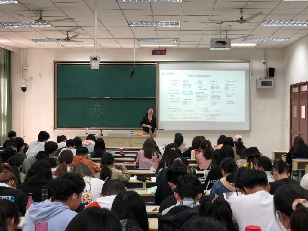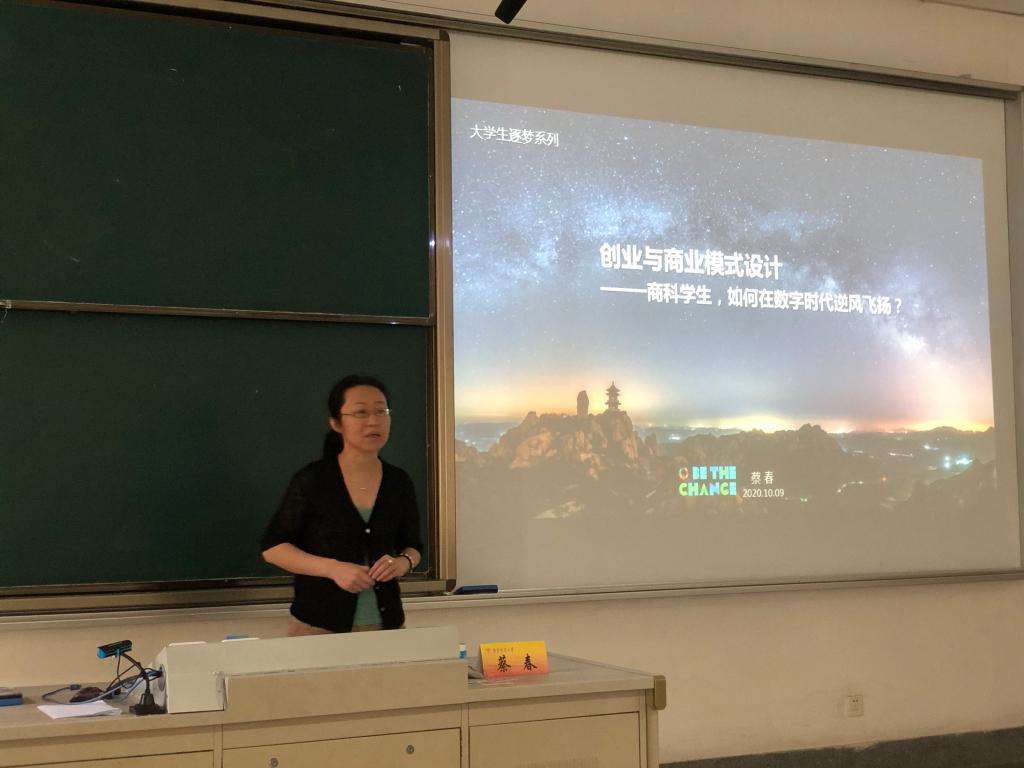 10月9日上午,应经济学院邀请,我校应用统计专业校外硕士研究生导师、广州智联网联盟发起人/副会长,MA Club企投家联盟核心发起人蔡春女士在仙林校区德济楼101教室作了题为“创业与商业模式设计——商科学生,如何在数字时代逆风飞扬?”的讲座。讲座由经济学院党委副书记袁怡琨主持,经济学院2017级经济统计学专业全体本科生到场聆听。