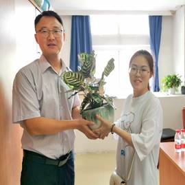 带着这份感恩与祝福,经济学院的学生代表将一盆盆绿植送到老师们的手中,并由衷地对老师们说:“老师,您辛苦了,祝您教师节快乐!”