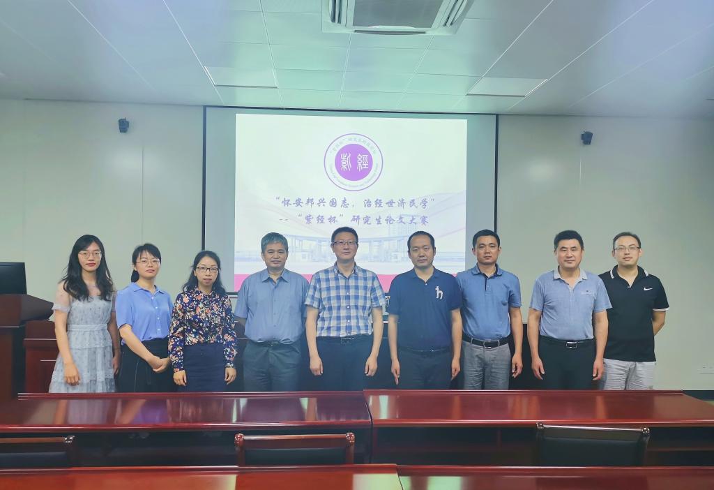 2020年6月19日下午,我院第一届“紫经杯”研究生学术论文大赛决赛在仙林校区德经楼307会议室成功举办。本届大赛以“怀兴国安邦志,治经世济民学”为主题,采用线上线下相结合的模式进行,参赛选手通过腾讯会议线上答辩,评委老师现场连线指导。校党委研究生工作部副部长、研究生院副院长华凌志受邀担任评委,经济学院院长朱红根、院党委副书记袁怡琨,院长助理崔向阳、院长助理韩中,硕士生导师代表白先春、周元春、杨振兵,经济学院研究生秘书满原、经济学院研究生辅导员栾亮参加活动,学院全体研究生线上观摩学习。