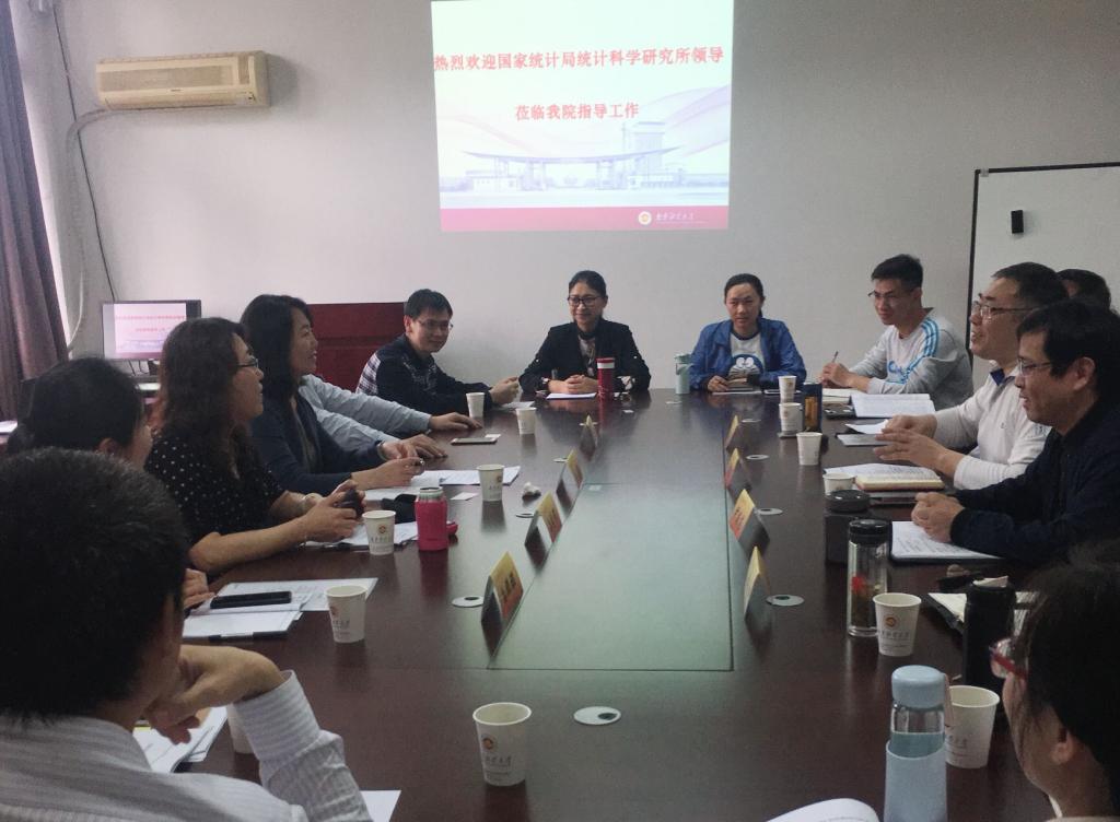 4月26日下午,应我院邀请,国家统计局统计科学研究所赵莉副所长、江苏省统计局统计科学研究所王思彤所长、《调研世界》编辑部主任孙继伟、编辑孙娜娜一行四人来经济学院调研座谈,座谈会由我院党委书记陈耀辉主持,我院部分教师及研究生参加了此次座谈。