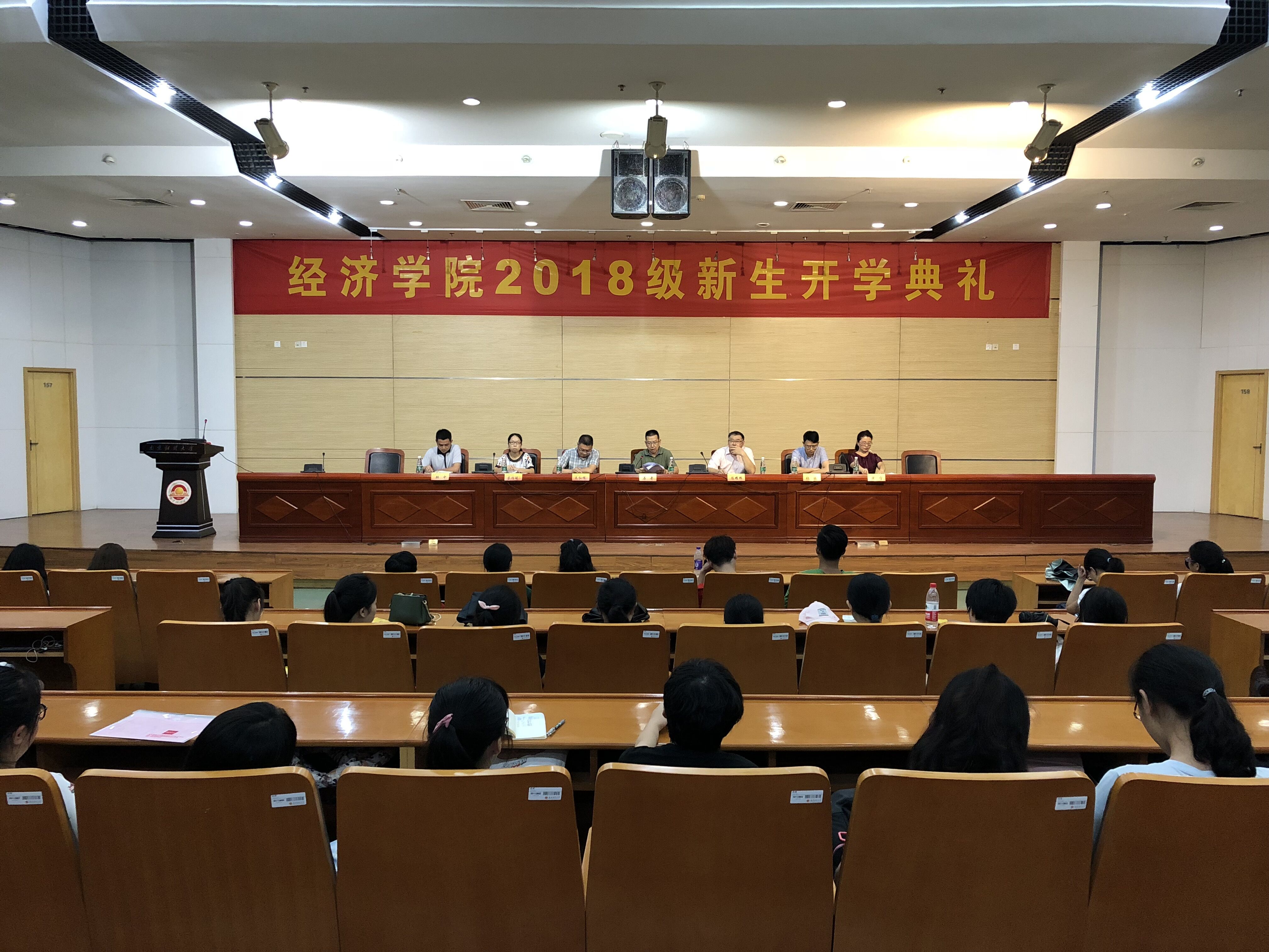 9月3日下午,图书馆报告厅座无虚席,我院2018级新生开学典礼在此举行。我院院长石奇,党委书记陈耀辉,党委副书记袁怡琨,副院长张成、朱红根,经济系主任周宁,统计系主任韩中等老师,我院2018级全体新同学出席了此次典礼。典礼由袁怡琨副书记主持。