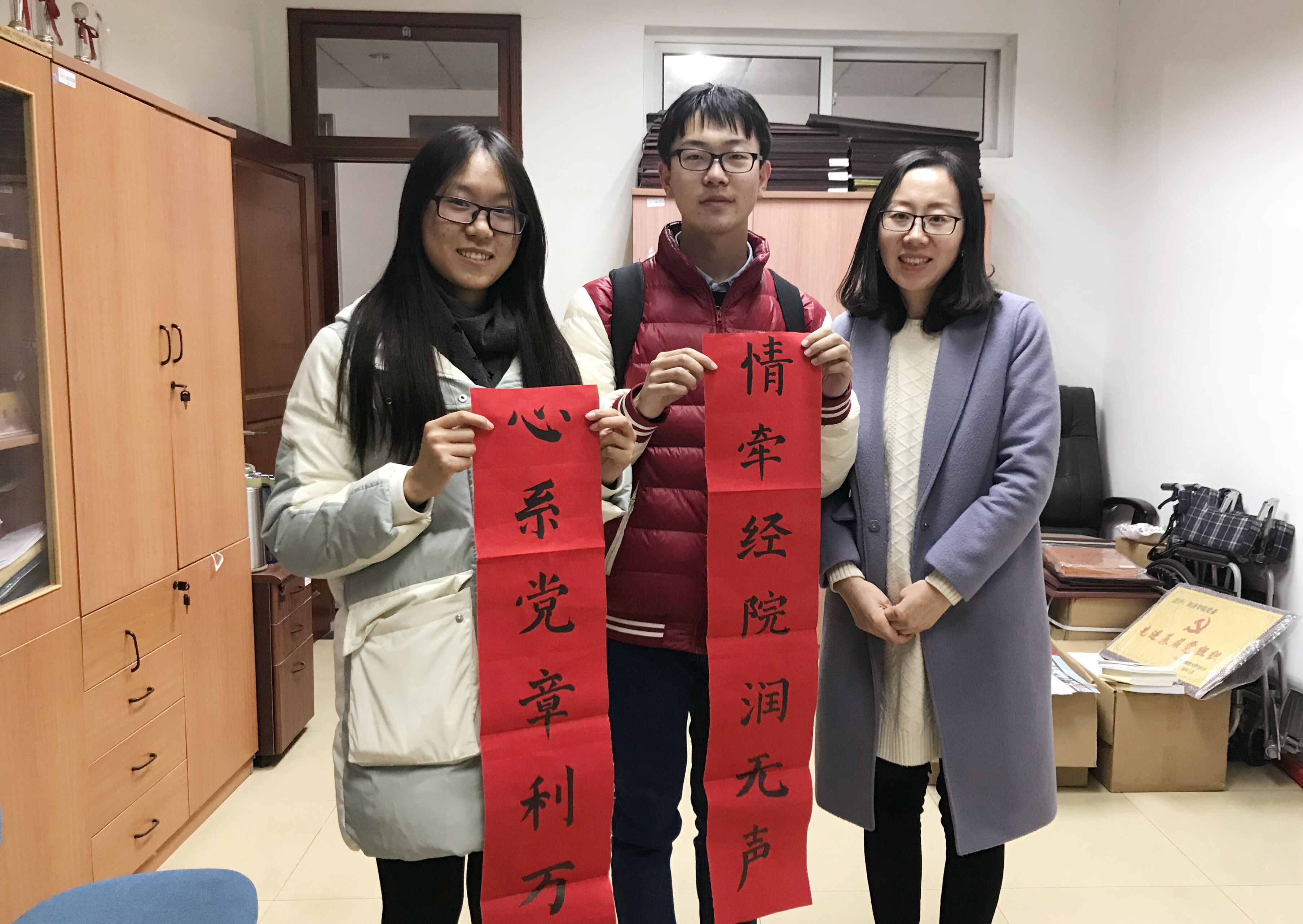 1月3日下午,同学们敲开了德经楼三楼经济学院老师们的办公室,为老师们奉上一幅幅新年对联,表达新年祝愿。收到对联的老师们非常欣喜,有的主动要求贴在门上。老师们在欣喜之余,和同学们发出共同的倡议和祝愿:在新的一年里,南财师生携手奋进,砥砺前行,共同谱写学校事业发展的新篇章!