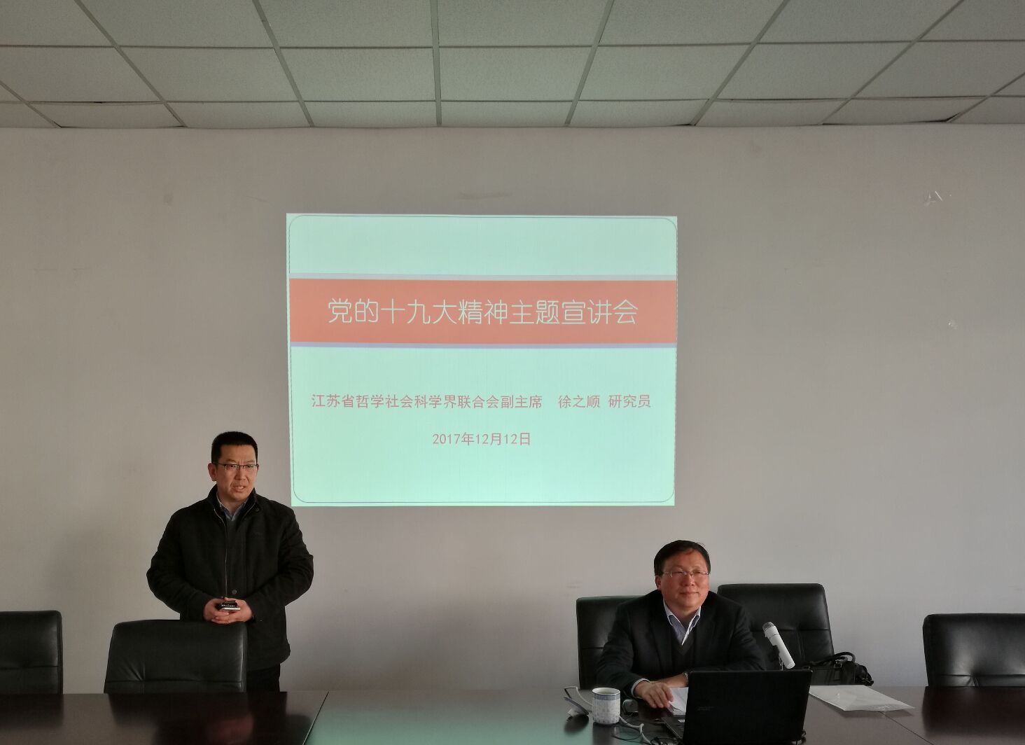 12月12日下午,我院德经楼307室举办学习十九大精神专题辅导讲座,邀请江苏省哲学社会科学界联合会副主席徐之顺主讲。讲座由我院院长石奇主持,我院全体教师参加了讲座。