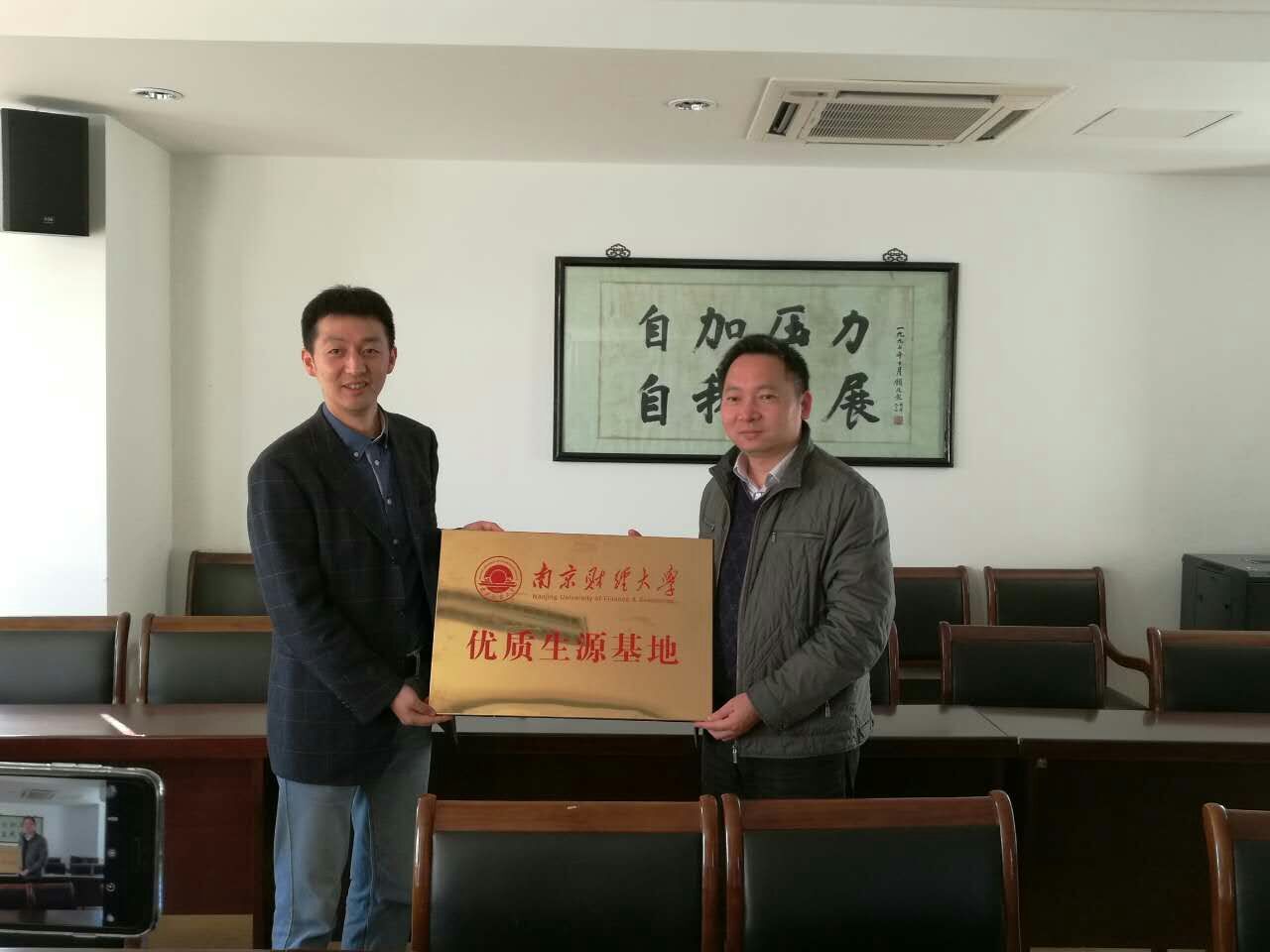 11月2日,我校学生处副处长衣琳、我院党委副书记郝园园一行赴无锡、苏州,分别与无锡市辅仁高中、苏州市第一中学等两所四星级中学签订“南京财经大学优质生源基地”协议并授牌。无锡市辅仁高中校长张军、德育处主任饶满林,苏州市第一中学副校长曹文杰、教务处主任张颖等参加了仪式。