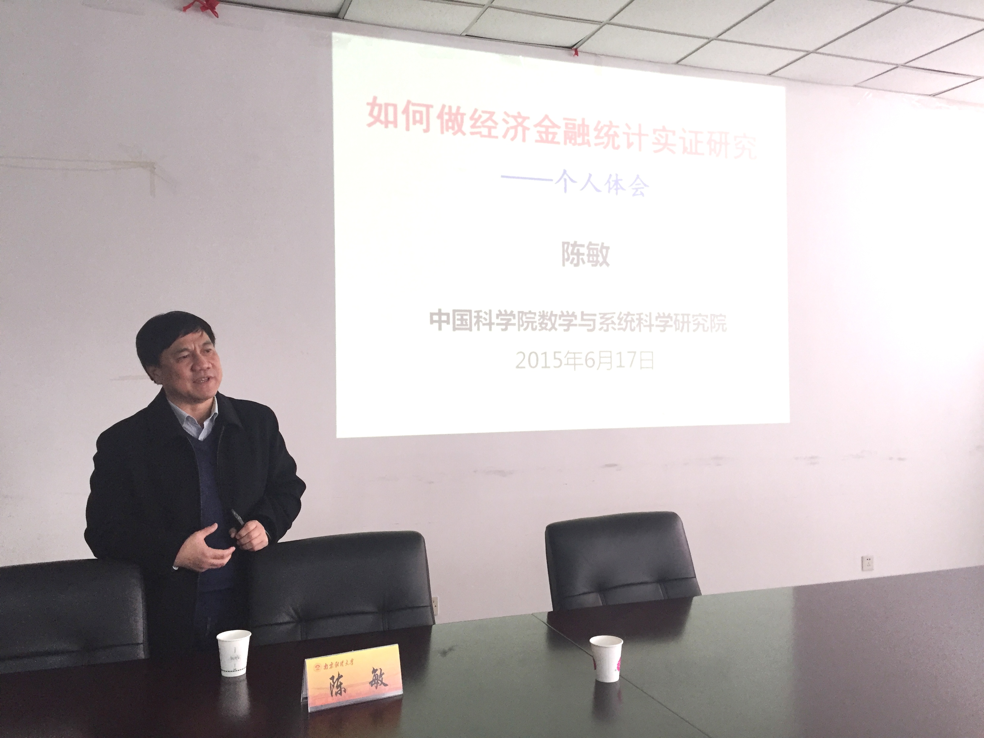 12月4日下午,应我院邀请,中科院数学与系统科学研究院副院长、博士生导师陈敏教授来我校讲学,在仙林校区经济学科楼307会议室作了题为“如何做好经济与金融统计实证研究”的报告。报告会由学院副院长(主持工作)陈耀辉主持,学院相关师生聆听了报告。