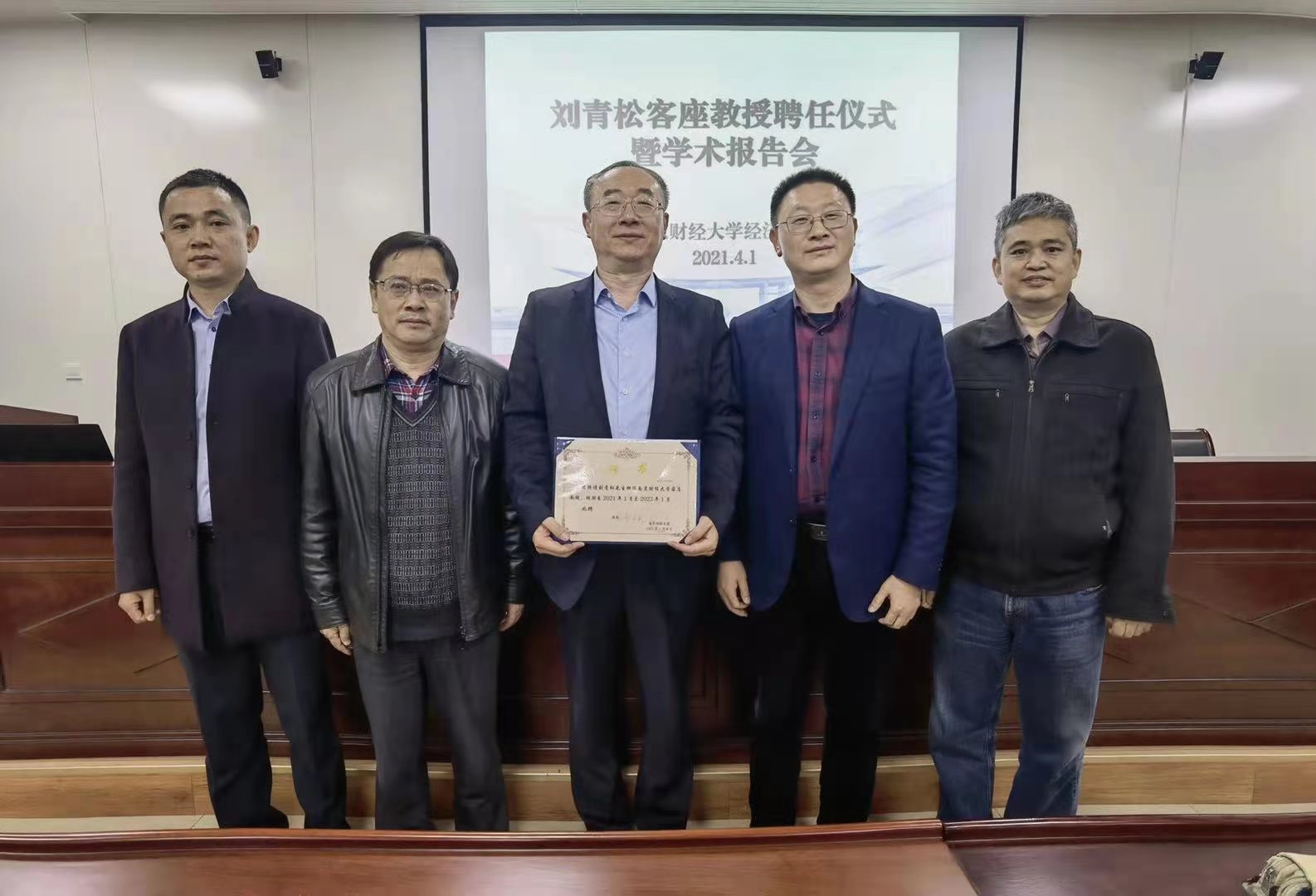 4月1日下午,经济学院刘青松客座教授聘任仪式暨学术报告会在德经楼307会议室举行。学院副院长尹敬东、崔向阳、韩中及部分师生出席仪式,仪式由院长朱红根主持。