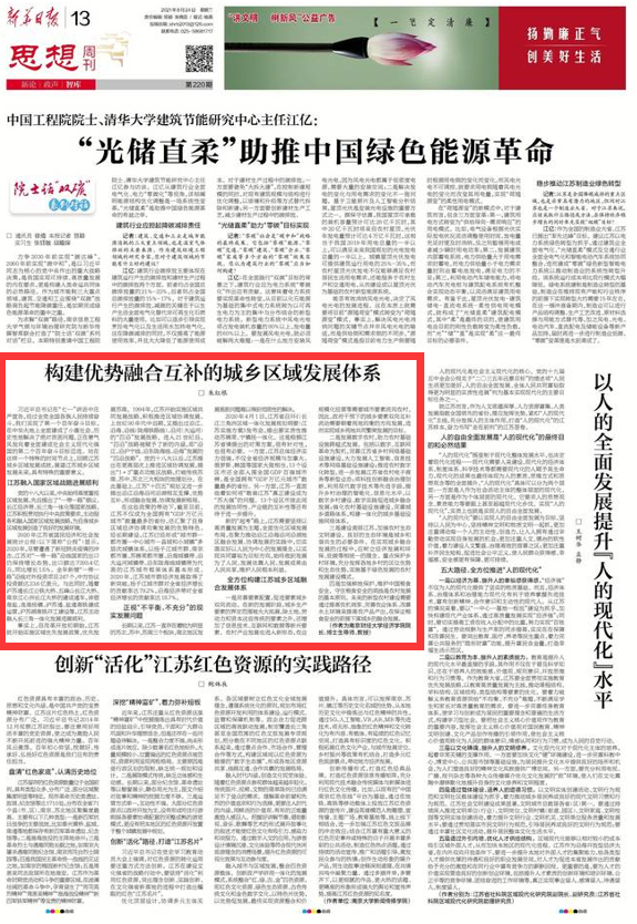 8月24日,我院院长朱红根教授在新华日报《思想周刊》第220期上发表了题目为《构建优势融合互补的城乡区域发展体系》的署名文章。