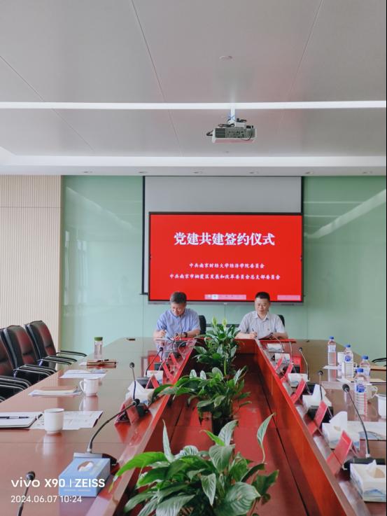 随后,双方党组织书记签订了结对共建协议,在创新党建形式、建立互动机制、拓展支部活动等方面开展共建,进一步整合优质资源、搭建合作平台,不断发挥各自特色与优势,以党建共建为牵引,推进常态联系机制、多方联动机制,资源共享机制、协同育人机制等,在创新“党建+”模式过程中,有力推动学院党建工作提质增效。此外,我院还将充分发挥学科优势和专业特色,为区发改委提供智力支持和决策咨询。双方将围绕区域经济发展、产业升级、政策制定等热点问题开展合作研究,共同推动理论创新和实践创新。