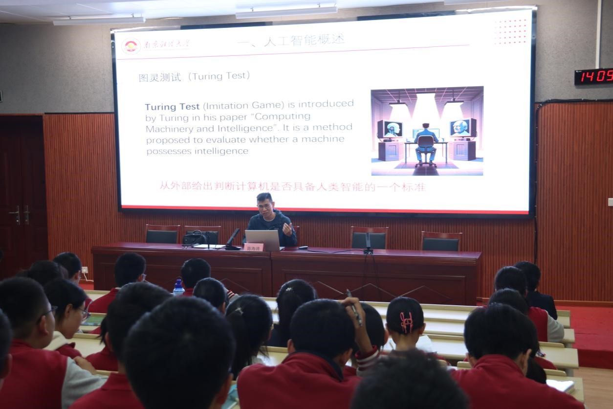 同时,南京财经大学经济学院副教授陈海清给徐州中学学生开设了题为《人工智能的前世与今生》的专业讲座,前沿的内容和精彩的讲解获得了在场学生的一致好评。