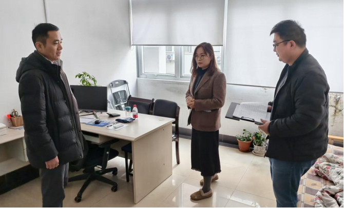 经济学院党委书记张圣兵教授、副院长崔向阳教授、青年教师戴嘉老师检查办公用房安全情况