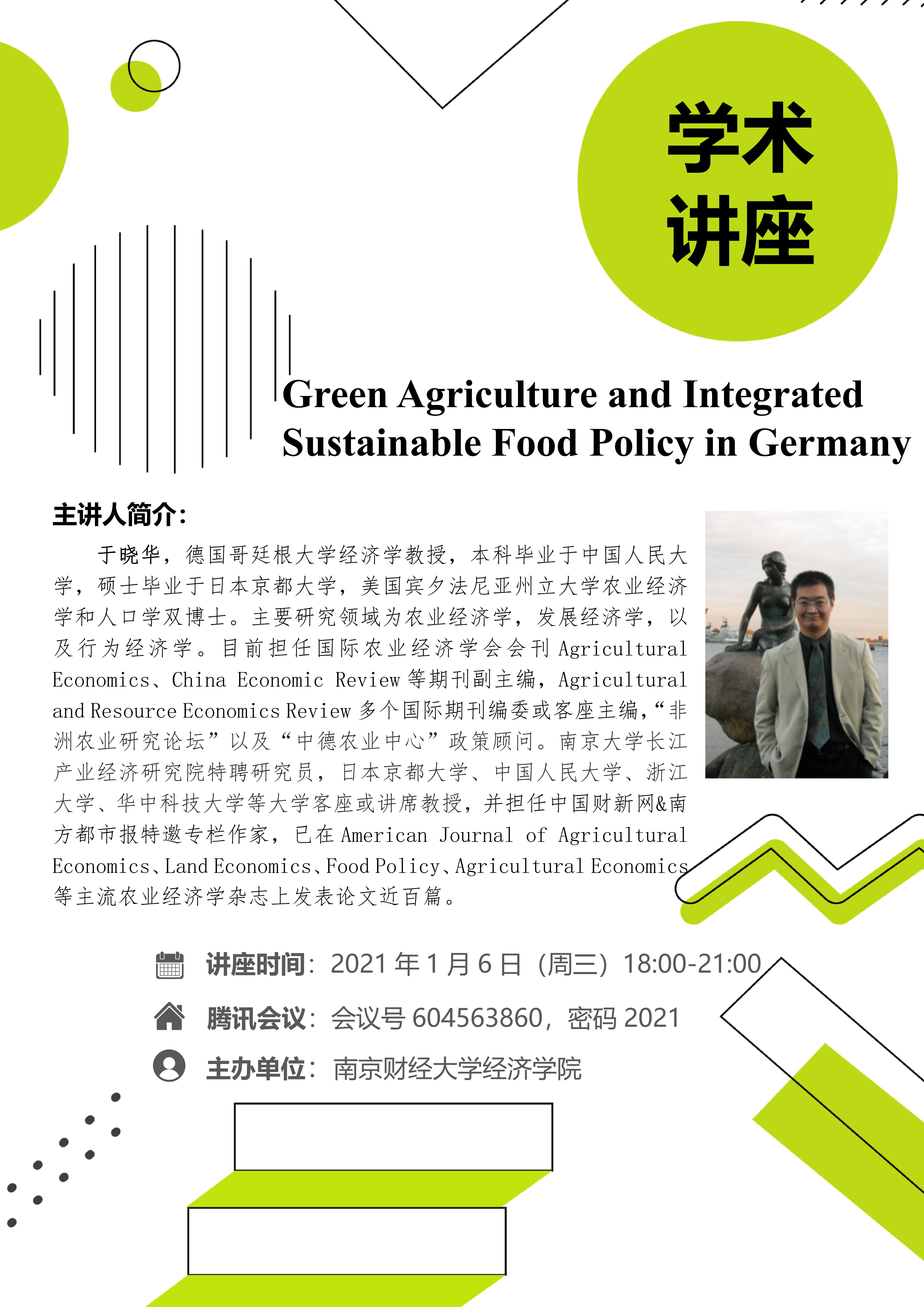 学术讲座预告:Green Agriculture and Integrated Sustainable Food Policy in Germany