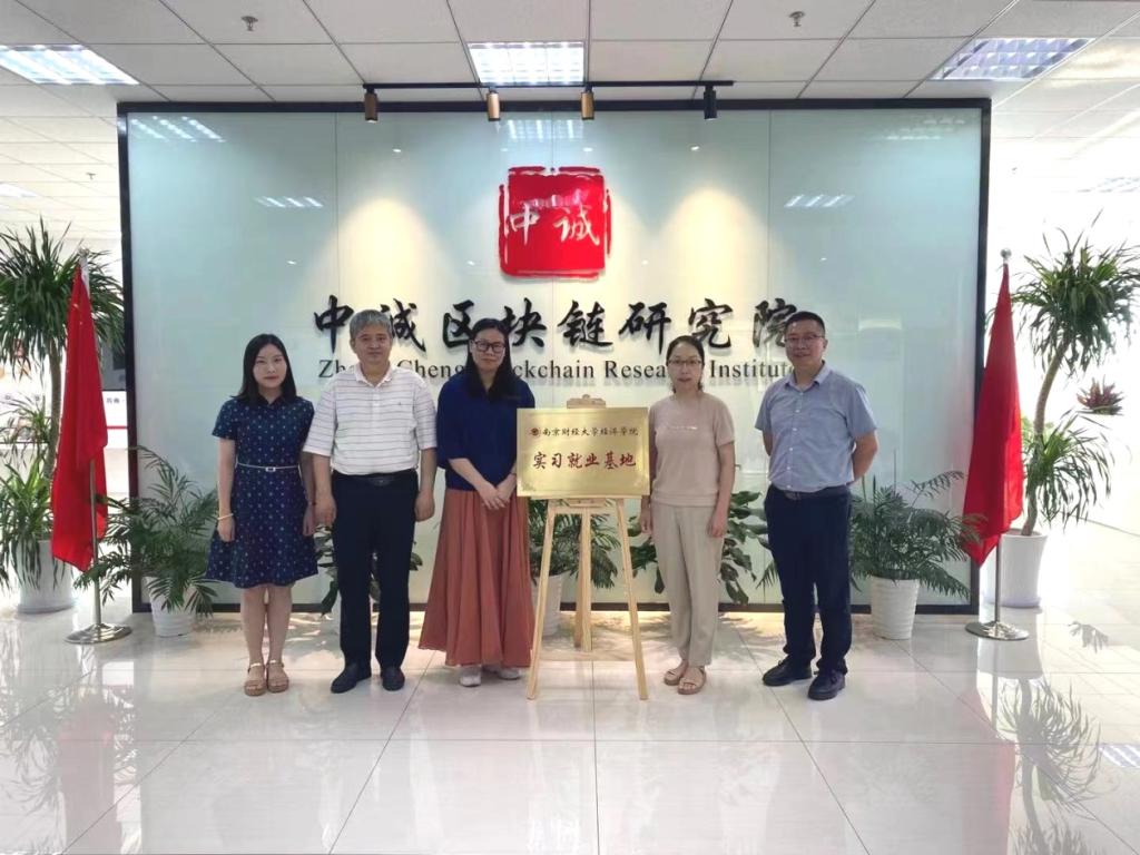 6月16日下午,经济学院领导带队到中诚区块链研究院走访调研,并举行实习就业基地揭牌仪式。经济学院崔向阳副院长、党委副书记袁怡琨、学工秘书尹海燕,中诚区块链研究院总经理汪洋、副总经理李媛媛等出席此次揭牌仪式。