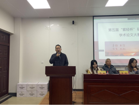 最后,崔向阳副院长宣布选手最终成绩与比赛结果,并对获奖选手表示祝贺。期望他们能够继续努力,取得更加卓越的成绩。他提到,随着时间的推移,这一大赛在学生中的知名度和参与度都有了显著的提高,参赛论文的质量也在不断提升。崔向阳副院长还特别强调了“紫经杯”对于提升学院研究生教育质量的积极作用。学院举办学术竞赛激发了研究生对科研的热情,为他们未来的学术追求和职业发展奠定了坚实的基础,这一赛事不仅为学生提供了展示自己研究成果的舞台,也为学院乃至整个学术界带来了新的活力和创新的火花。