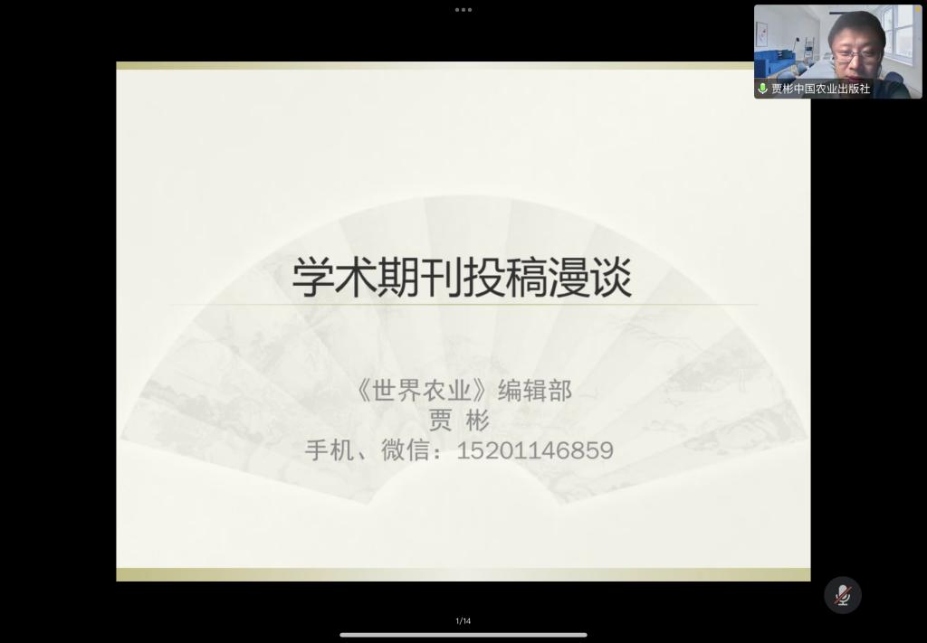 9月28日晚,中国农业出版社期刊出版分社副社长、《世界农业》执行主编贾彬研究员在线上为我院师生作了题为“学术论文写作技巧与投稿经验”的学术讲座。学院近两百位研究生和教师参加了本次讲座。讲座由我院院长朱红根教授主持。