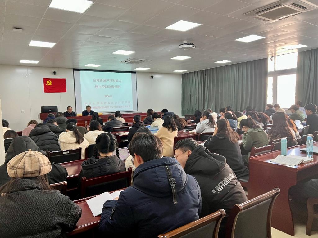12月17日下午,南京大学地理与海洋科学学院博导黄贤金教授,在经济学院307会议室作了题为“自然资源产权改革与国土空间治理创新”的学术报告。报告由经济学院院长朱红根教授主持,经济学院师生及公共管理学院部分老师聆听了此次报告。