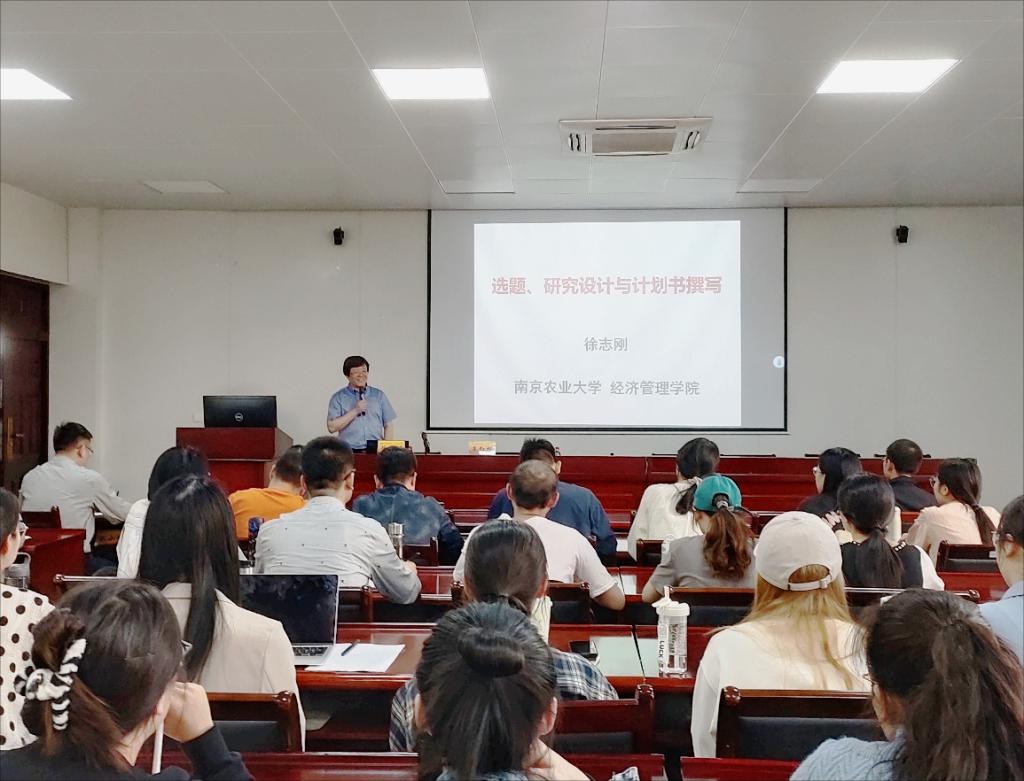 11月2日下午,应经济学院邀请,南京农业大学经济管理学院院长徐志刚教授在仙林校区德经楼307会议室作了题为“选题、研究设计与计划书撰写”的学术讲座。讲座由我院院长朱红根教授主持,经济学院部分教师、博士生、研究生参加了此次讲座。