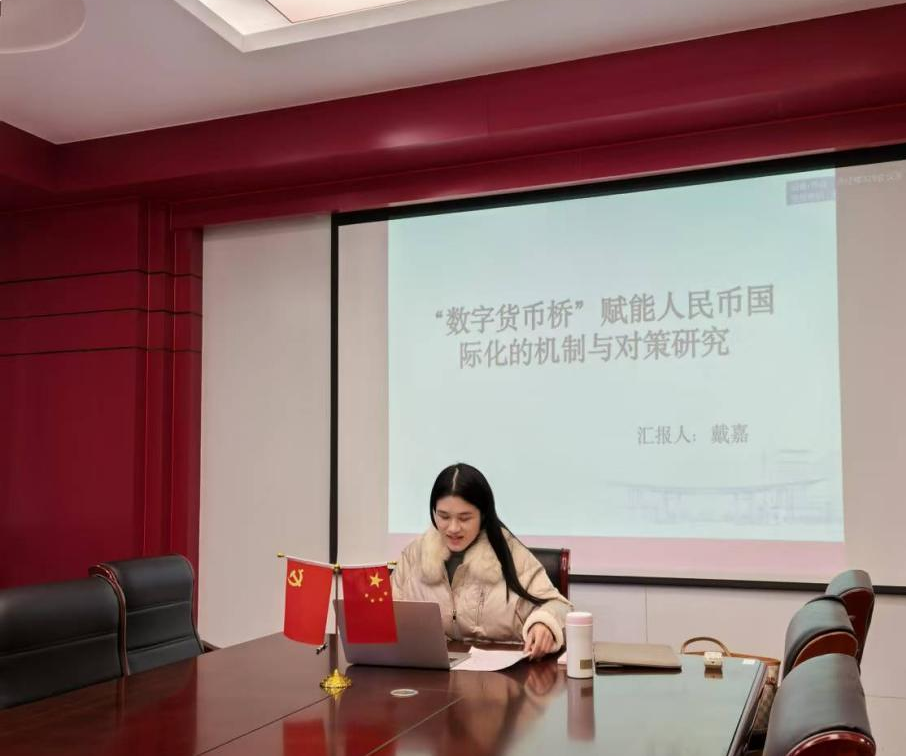 11月27日上午,我院在德经楼329会议室举办了双周论坛。今天论坛由戴嘉老师带来题为“‘数字货币桥’赋能人民币国际化的机制与对策研究”的学术交流。经济学院陈杰副教授主持了本次学术论坛,刘小峰院长与部分教师参与研讨。