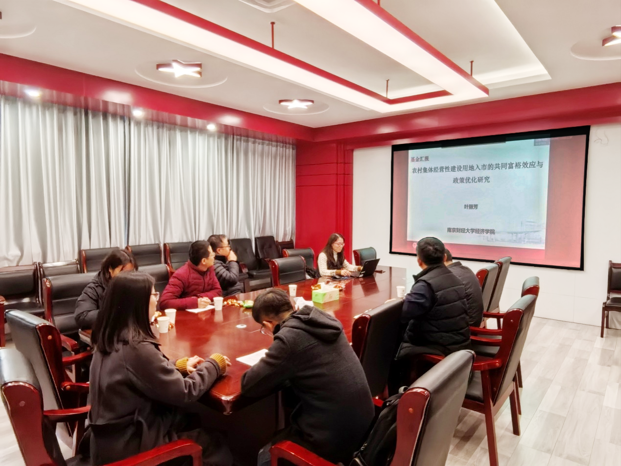 12月19日下午,我院在德经楼329会议室举办了双周论坛。本次论坛由叶丽芳老师带来题为《农村集体经营性建设用地入市的共同富裕效应与政策优化研究》的学术交流。经济学院陈杰副教授主持了本次学术论坛,刘小峰副院长(主持工作)与公共管理学院吕立刚、饶芳萍、李建豹、孟浩、赵爱栋、陈敏杰、陈燕华等老师参与了研讨。