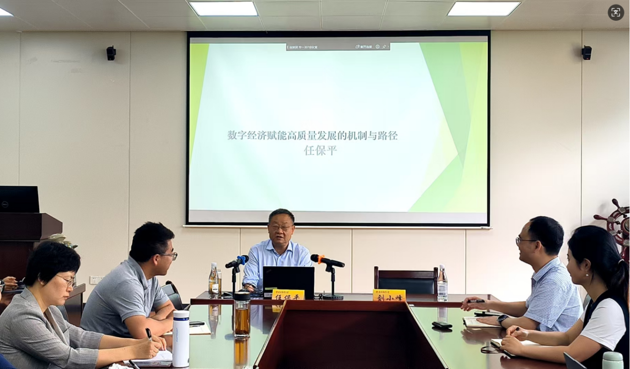 2025年5月19日上午,南京财经大学经济学院在德经楼307会议室成功举办了主题为 “数字经济赋能高质量发展的机制与路径”的讲座,会议由我院院长刘小峰教授主持,特邀南京大学任保平教授担任主讲嘉宾,全院师生积极参与了此次学术盛会。