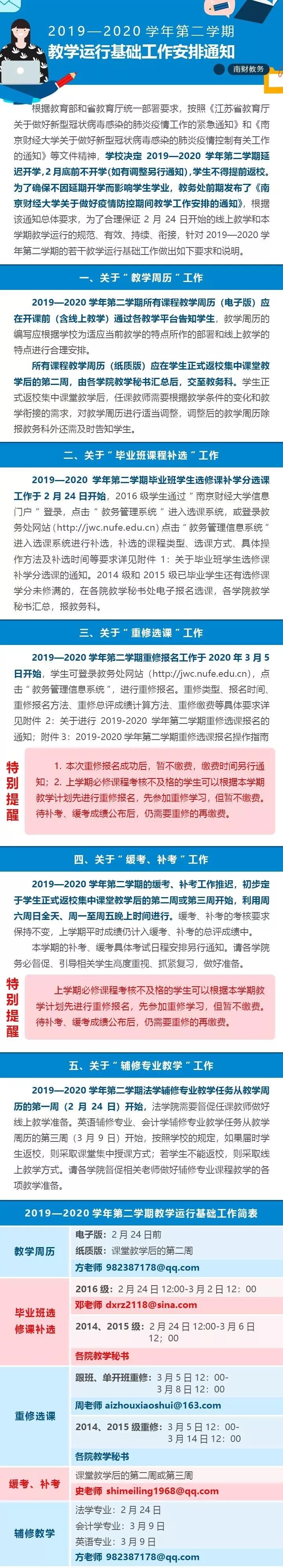 2019-2020第二学期教学运行基础工作安排通知