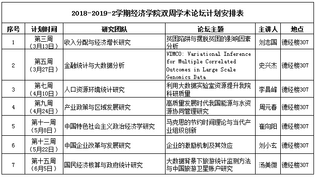 2018-2019-2学期黑料网 双周学术论坛计划安排表