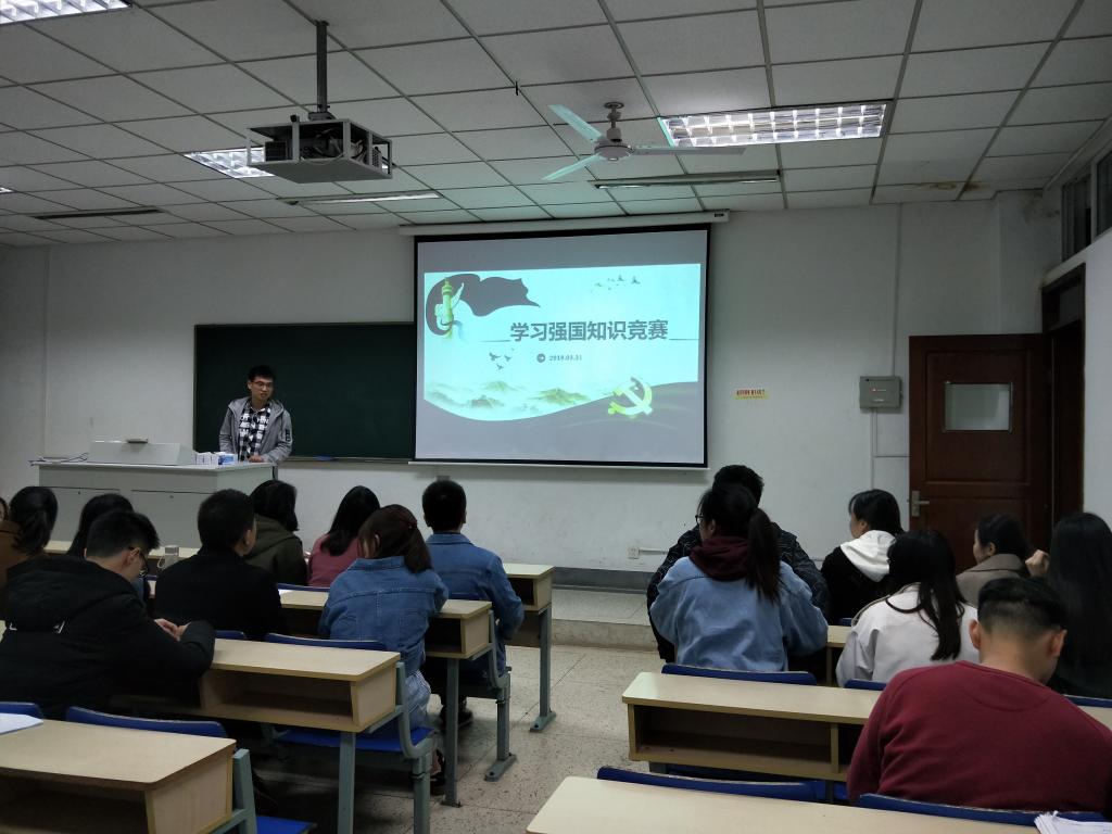 为促进学生积极学习习近平新时代中国特色社会主义思想,推进马克思主义学习型党组织的建设,加强“学习强国”平台的推广和使用,2019年03月31日,我院研究生第二党支部“学习强国”知识竞赛在德经楼201室顺利举办。本次竞赛由我院主办,我院研究生第二党支部承办。