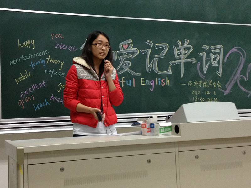 为提高同学们背单词的积极性以及对英语学习的热情,以营造浓厚的英语学习气氛,12月3日晚6:30,由我院学生会学术科技部主办的“我爱记单词”活动于经济学科楼成功举办。