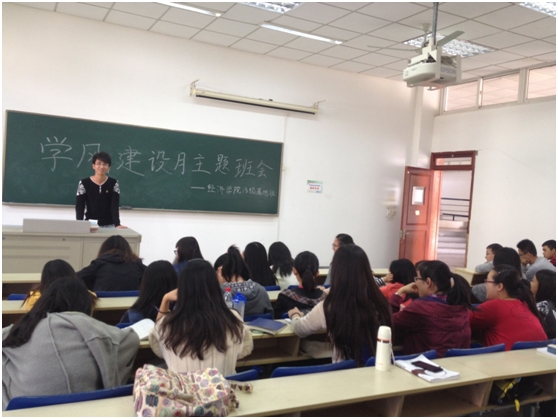 10月31日,我院13级召开了学风建设月主题班会。本次班会主要围绕学风建设月教育活动主题“践行社会主义核心价值观,培育勤学、修德、明辨、笃实的良好习惯”而展开。会议主要讨论了班级学风的整改措施,倡导班级同学从自身做起,从小事做起,纠正学风,营造良好的学习氛围。学习委员在班会上分析了目前存在的一些共性问题,比如:学风浮躁、学习自主性差、懒散,沉迷于游戏和小说等。同时提出了相应的解决措施,比如建立学习小组、加强与任课教师的沟通,加大查课力度等。同学代表刘胜发还向大家分享了自己的学习经验——课堂与图书馆相结合努力扩展知识面,并从课堂学霸、图书馆学霸和讲座学霸三个角色分析了同学们现在的学习情况。希望通过此次主题班会的召开,同学们能将“青年自觉践行社会主义核心价值观”的思想落实到学习生活中,建设优良班风,促进自身的成长发展。