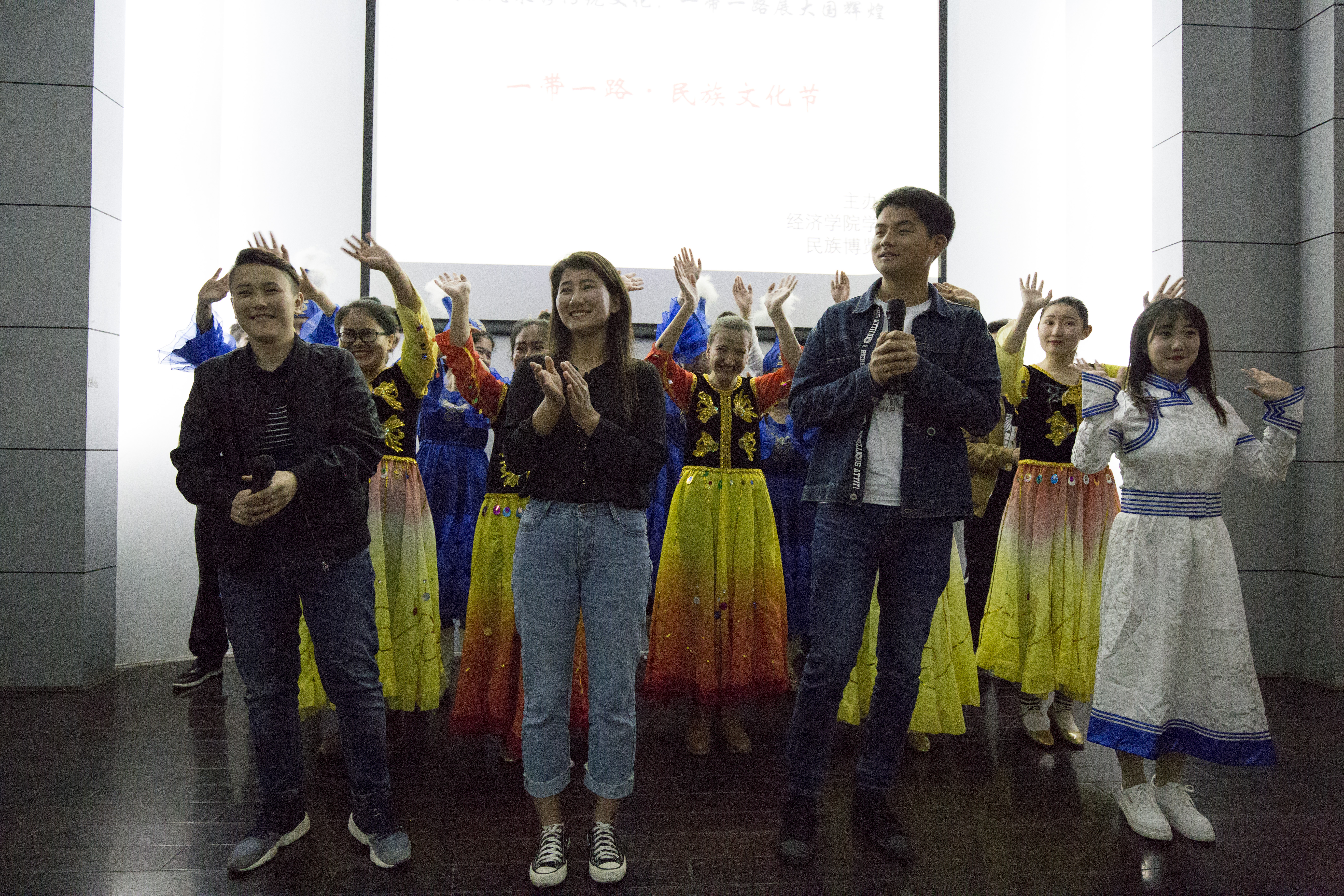 3月31日晚,由我院和民族博览协会主办的“民族风采秀传统文化,一带一路展大国辉煌”晚会在德经楼二楼报告厅温情上演,新疆内派老师马冰老师,民族文化社社长玛尔江·土尔逊江以及部分师生观看了此次晚会。
