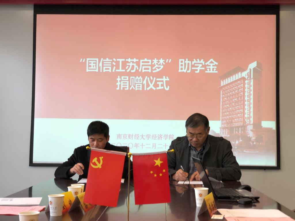 12月22日下午,经济学院在仙林校区德经楼329会议室举办“国信江苏启梦”助学金捐赠仪式。国信证券股份有限公司江苏分公司总经理祁立林一行,经济学院党委书记陈耀辉、副书记袁怡琨、学工及行政教师代表和受助学生参加了捐赠仪式。捐赠仪式由袁怡琨主持。