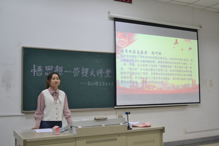 4月27日晚,经济学院分团委在德经楼110教室开展“悟思想·劳模大讲堂”活动,分团委副书记、各班级团干部、分团委工作人员及学院部分学生参加了活动。活动分为三个环节,首先,全体同学集体观看五一劳动节宣传视频,明白劳动节的来历,了解中华优秀传统文化;听习近平总书记说给劳动者的“暖心话”,大力营造劳动氛围;通过分享一件件党史小故事,讲述以习近平同志为核心的党中央领导全国人民脱贫奔小康方面取得的伟大历史性成就,激发大家奋发向上的大能量。二是由优秀志愿者学生代表朱海荣和优秀抗疫志愿者冯叶欣开展党史学习教育宣讲活动,讲述自己的志愿者活动经历与感悟,号召大家积极参加志愿活动,大力弘扬热爱劳动、热爱学习、乐于奉献的高尚品质。三是观看学习劳模工匠视频,学习他们在平凡的岗位上默默无闻的奉献精神。然后以小组为单位进行讨论,交流自己的观影心得体会,分享身边的感人故事,大力弘扬劳模精神和工匠精神,学会感恩。